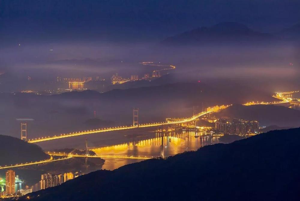 钢缆上的灯泡似一颗颗串起来的星星,站在观景台远望,青马大桥像一道光斑,划破漆黑的长空;拂过的夏风就像一双手,为我们拭去一天的疲惫。