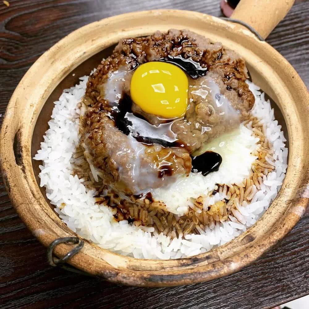 用炭火烧红煲,再加入米饭及自主选择的配料,熟后立即盖上一只生鸡蛋及甜味的豉油,嘶的一声听起来充满愉悦,盛一小勺送入口中,满足到让人想劈叉!